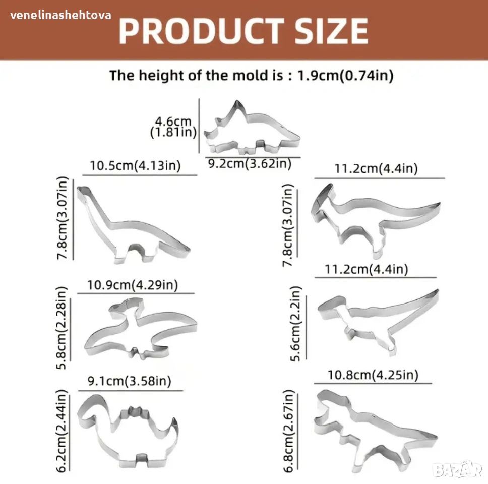7 броя динозаври динозавър метални резци резец тесто бисквитки фондан декорация торта → Обява 53921554