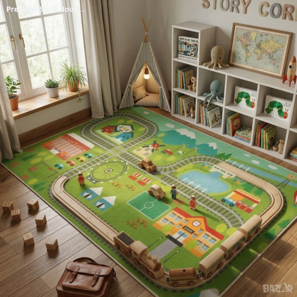 Детски килим за игра 120х160см - Яркозелен килим с влак и релси, противоплъзгащ и миещ се 28€-1бр. 53€-2бр. Технически характеристики на Детски килим за игра 120х160см - Яркозелен килим с влак и релси, противоплъзгащ и миещ се Килимът е проектиран с внимание към детайла и нуждите на родителите. Технически параметри и характеристики: Размери: 120 x 160 см Материал лице: мека, водоустойчива повърхност, лесна за почистване Материал гръб: нетъкан текстил, противоплъзгащ и устойчив на надраскване Функционалност: сгъваем, лек за пренасяне, подходящ за целогодишна употреба Подходящ за възрасти: от около 6 месеца до 6 години Поддръжка: почистване с влажна кърпа; не се препоръчва машинно пране Доставка с Еконт с опция преглед и тест до 3 работни дни.