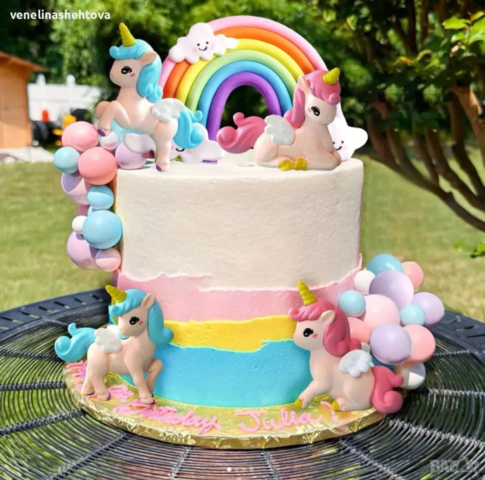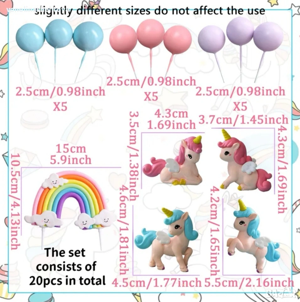 20 броя комплект фигурка unicorn еднорог дъга топчета топки на тел за декорация на торта → Обява 53922185