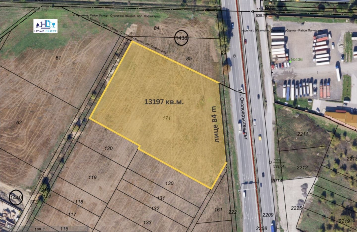 Предлагаме за продажба изключително атрактивен имот разположен на първа линия с 84 метра лице на Околовръстен път Източна дъга, в близост до основни транспортни артерии и с отлична видимост и достъп. Устройствена зона: ПС Смесена производствена зона с показатели за застрояване: