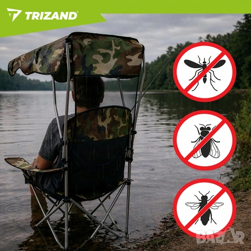 TRIZAND PANAMA – риболовен стол с сенник и мрежа против насекоми (камуфлаж)