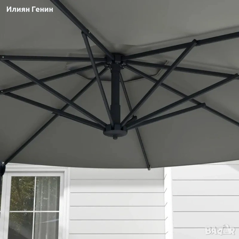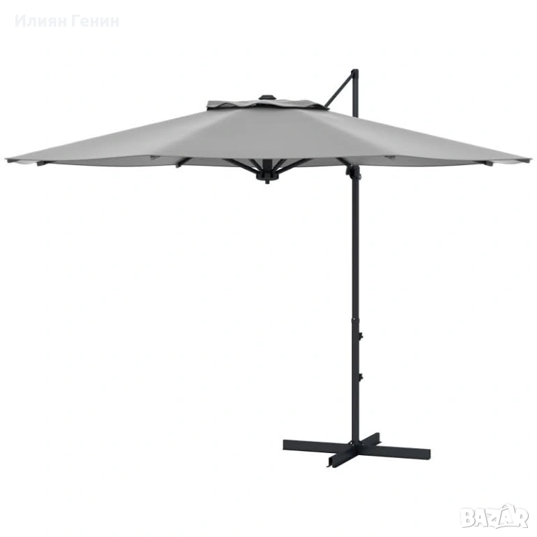 Конзолен чадър Outsunny Ø3 м, накланящ се, въртящ се, ръчна манивела, вентилационен отвор, метална мачта, тъмносив - 95.00 €.