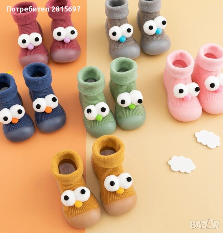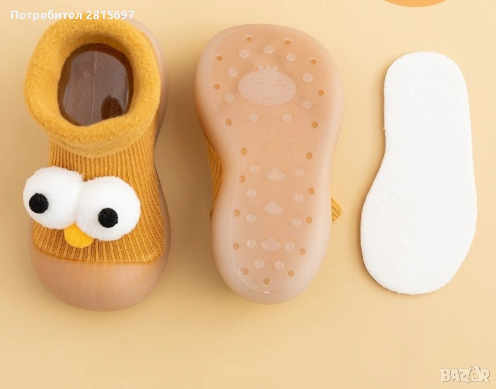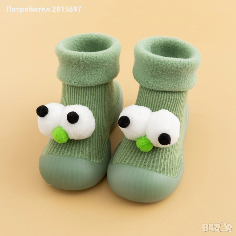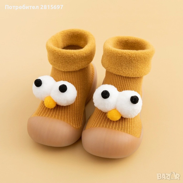 Детски есенно зимни домашни обувки с чорапче и очички → Обява 53922436