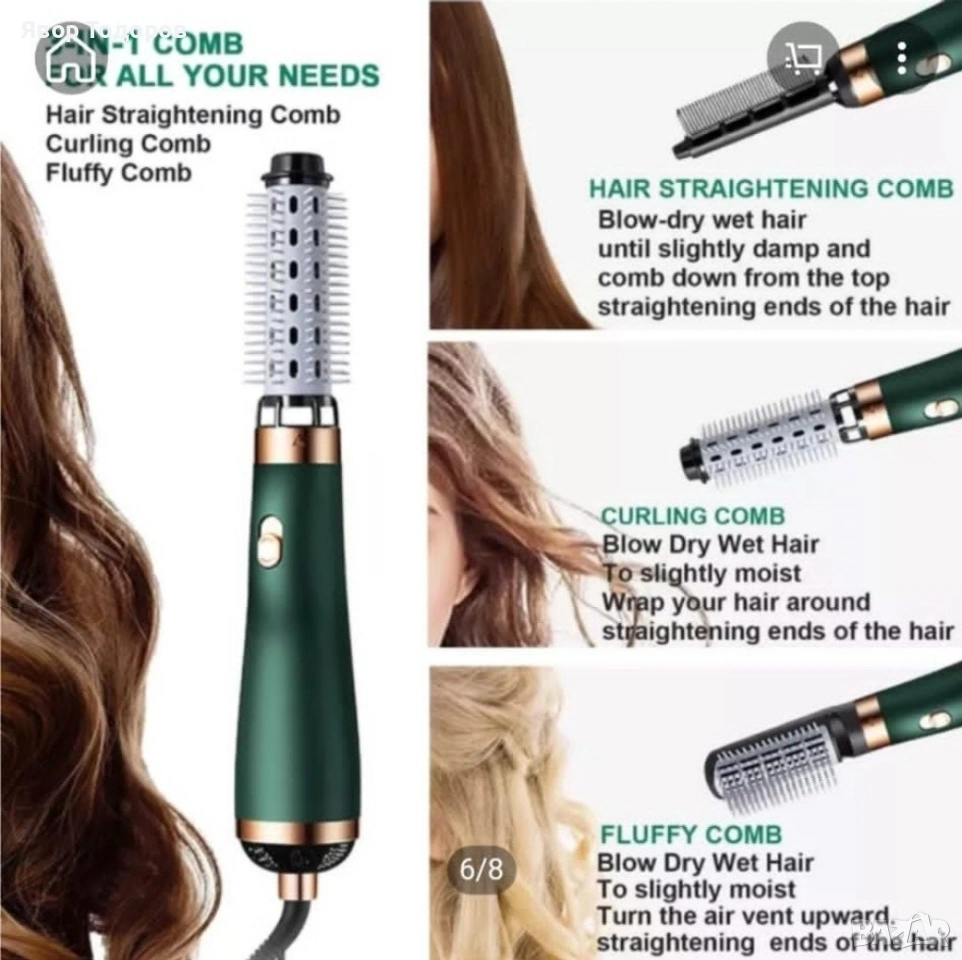 Сешоар с три накрайника, 3 степени на мощност, използва горещ въздух /Двигател: DC мотор; Мощност 2000W; 3 приставки: За изправяне, Накъдряне и Изсушаване; Перфектен стайлинг; Максимална ефективност, резултат лъскава коса; Бързи и трайни резултати;