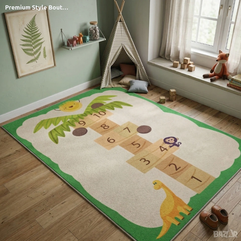 Детски килим за игра 120х160см - Бял килим с динозавър и дама-палма, противоплъзгащ и миещ се Килимът е създаден с ясни параметри за удобство и дълготрайност. Основни технически детайли включват: Размери: 120 cm × 160 cm Материал лице: мека, водоустойчива, миеща се повърхност Материал гръб: нетъкан текстил, противоплъзгащ и устойчив на надраскване Функционалност: сгъваем, лек за пренасяне, подходящ за целогодишна употреба Подходяща възраст: от около 6 месеца до 6 години Поддръжка: почистване с влажна кърпа, не се препоръчва машинно пране