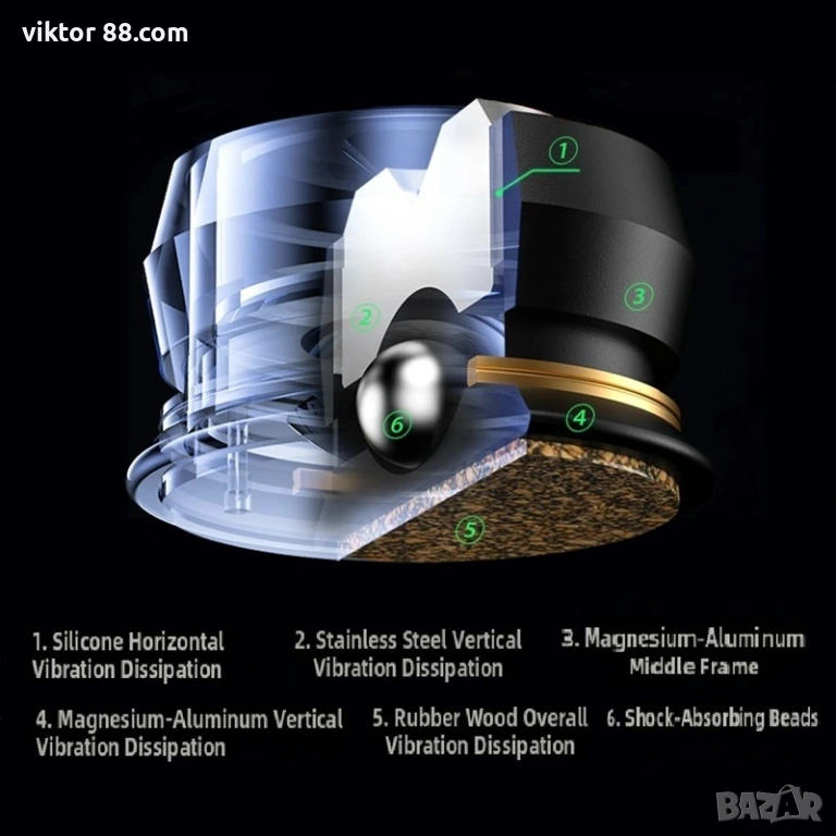 Step 4: The remaining vibrational energy is comprehensively absorbed and dispersed by the bakelite isolation gasket.