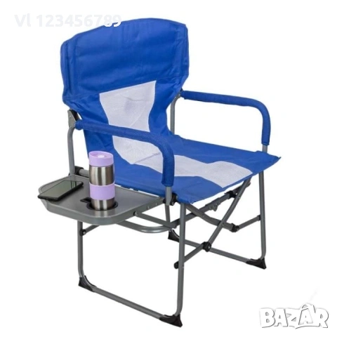 Този сгъваем къмпинг стол е идеален за риболов, излети, градина, пикници и плаж. Изработен е от здрава метална конструкция и висококачествена материя Oxford 600x300D, която е водоустойчива и издръжлива. Столът е лек, компактен и лесен за транспортиране, а вградената масичка с поставка за чаши осигурява допълнителен комфорт