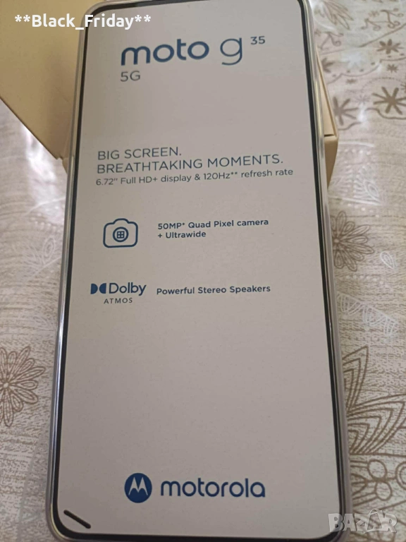 Продавам Motorola Moto G35 5G – модерен, бърз и с голям дисплей, идеален за ежедневие, игри и социални мрежи.