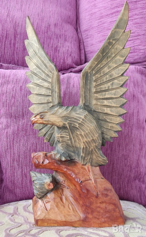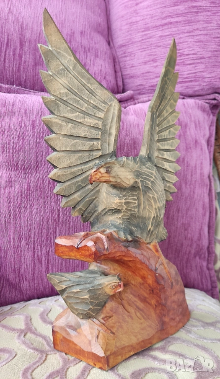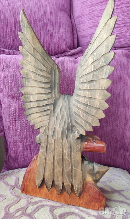 3. Ръчно дялан дървен орел с орле. Запазен.