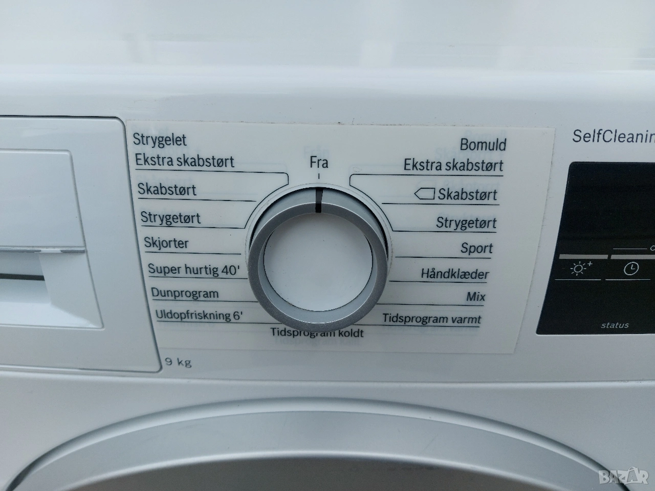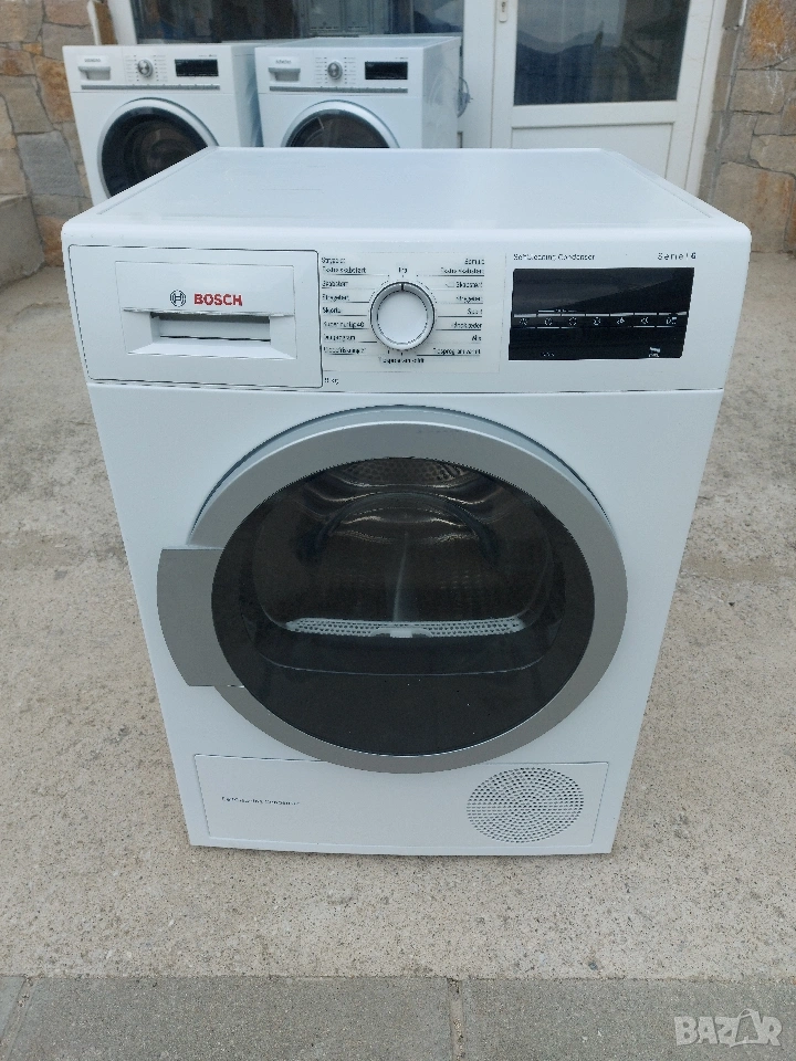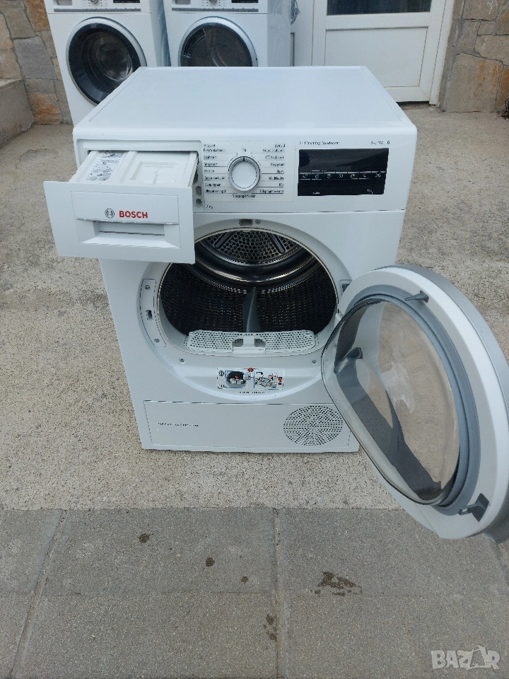 Сушилня BOSCH 6 Serie Цена:330 евро Енергиен клас А+++ ActiveAir Technology SensitiveDrySystem 9кг. капацитет Термопомпа Двоен филтър Дисплей Голям светодиоден дисплей с програмен поток, 24-часово начално време на стартиране, специални функции и оставащо време Клавиши TouchControl: Старт / пауза, Сканиране, Сигнал, Анти-навиване, Продължителност на програмата, 24 часа забавено начално време Концепция SensitiveDry: Голям барабан от неръждаема стомана, носачи в мек дизайн Антивибрационен дизайн: Повишена стабилност и по-тиха работа Самопочистване Самопочистващ се кондензатор: Кондензаторът се изплаква автоматично през всяко сушене. Не е необходимо да го почиствате Специална програма: WoolFinish 6 ', Mix, кърпи, програма за време гореща, програма за време студена, спорт, програма надолу, супер бързо 40, ризи / бизнес Анти-гънки, до 120 минути в края на програмата Контрол на температурата Система SensitiveDrying: изсъхва равномерно и нежно, благодарение на техниката на сушене и специалната структура и дизайн на барабана Качеството ECARF е специално разработено за Вас с алергии и чувствителна кожа. Деликатно Програми Събира водата в контейнер и не се нуждае от тръби и маркучи. 6 месеца гаранция Гаранционен и извън гаранционен сервиз Внос от Германия Имаме още уреди на склад Безплатна доставка за Смолян
