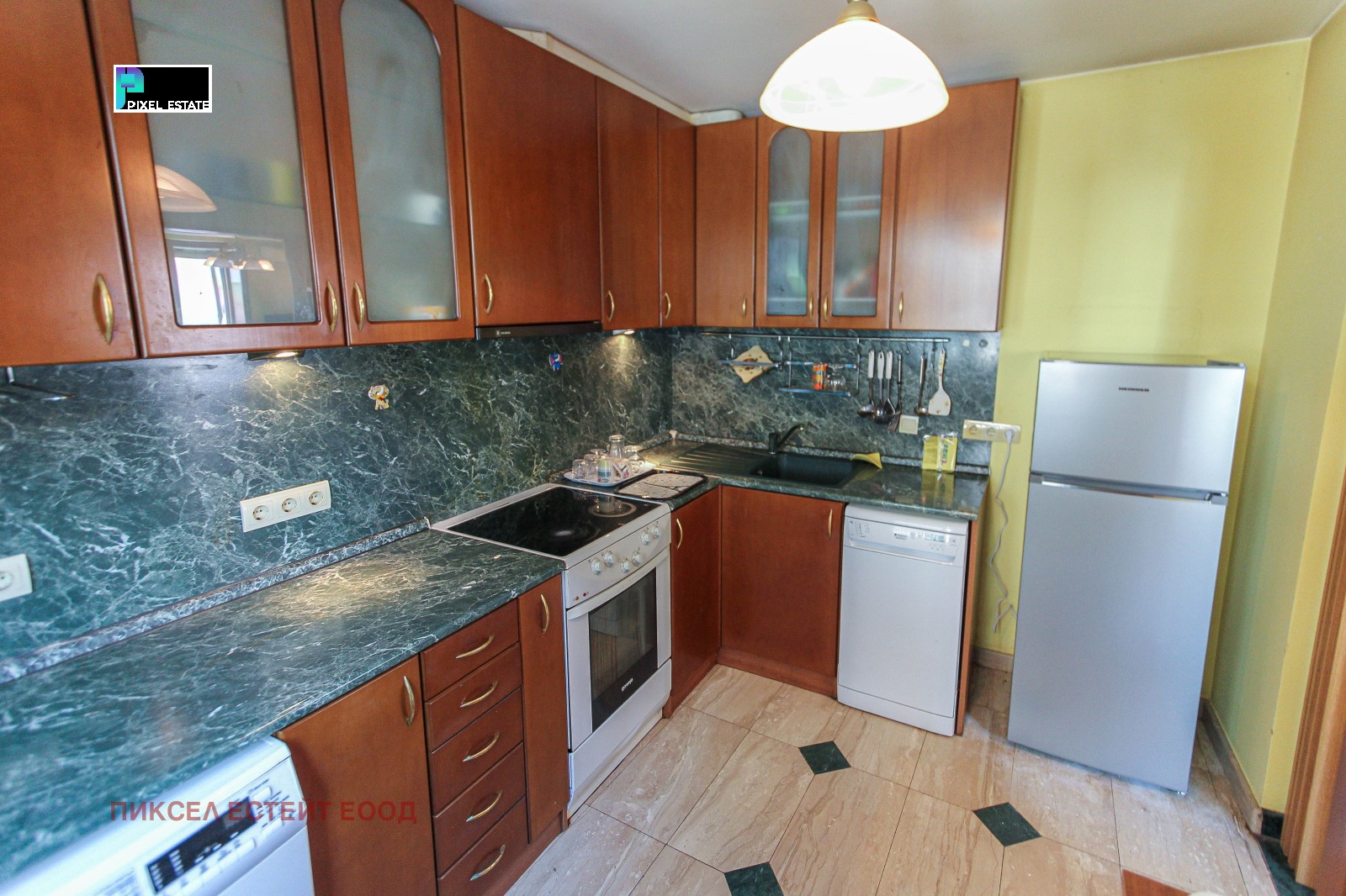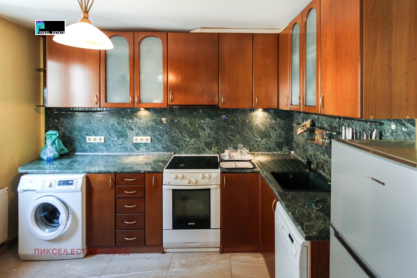 - 🍽 Кухня: печка, хладилник, съдомиялна, пералня, абсорбатор