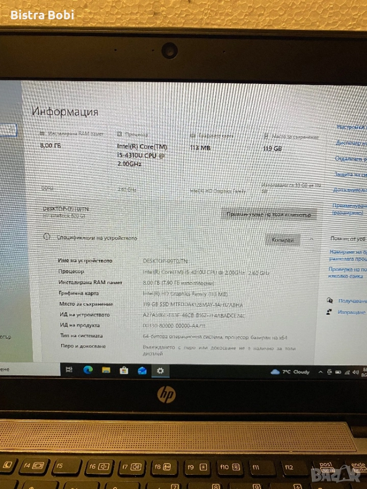 Процесор:Intel Core i5- 4310U-4x 2.00GHz
