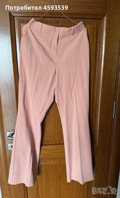 Официален розов костюм в розов цвят с леко разкроен панталон размера е 42