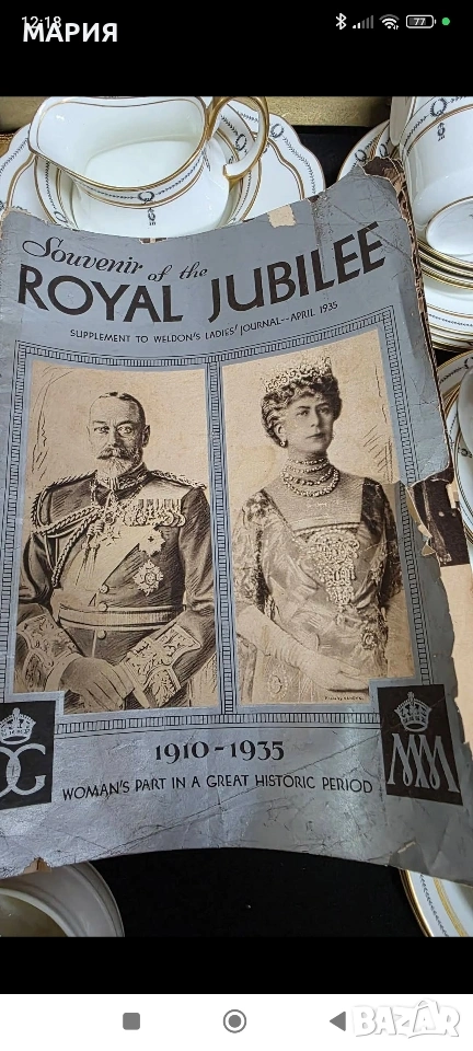Намерих информация, че подобен комплект е свързан с кралското посещение в Южна Африка през 1947 г. В снимките има благодарствено писмо по този повод. Документ от 23 май 1947 г., изпратен от Leeuwenhof, Кейптаун, в който се изказва благодарност на госпожа Ретиер за предоставения сервиз, използван на кралската трапеза по време на Градинското парти в чест на крал Джордж VI, кралицата и принцесите Елизабет и Маргарет. Цена на целия комплект - 120евро (234.70лв). Засега предпочитам да не го деля.