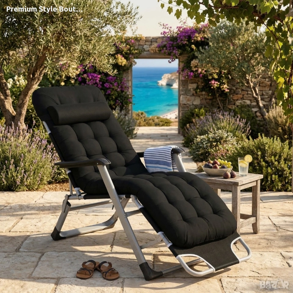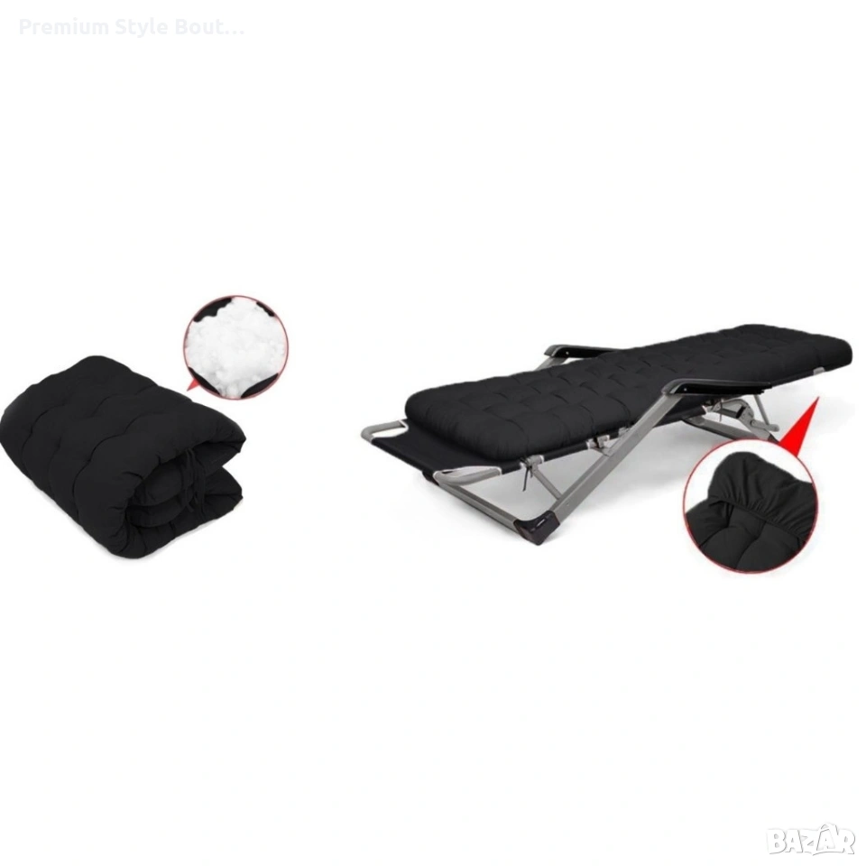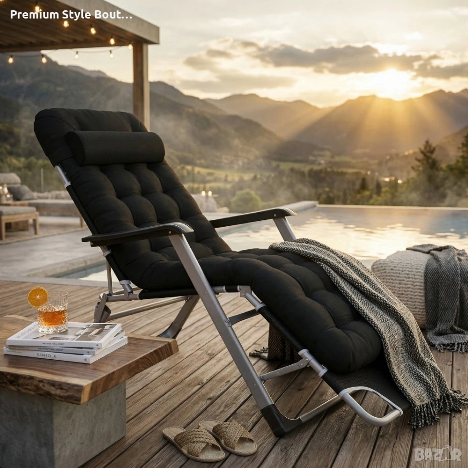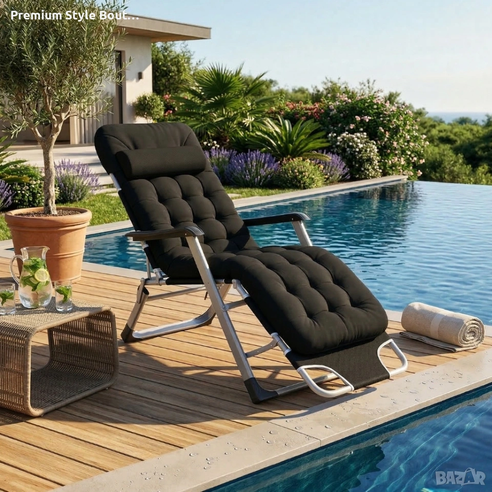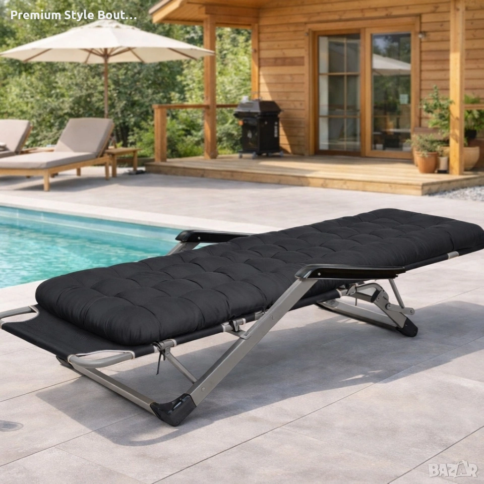 Сгъваем градински шезлонг с ватирана възглавница, регулируема облегалка , 178 см