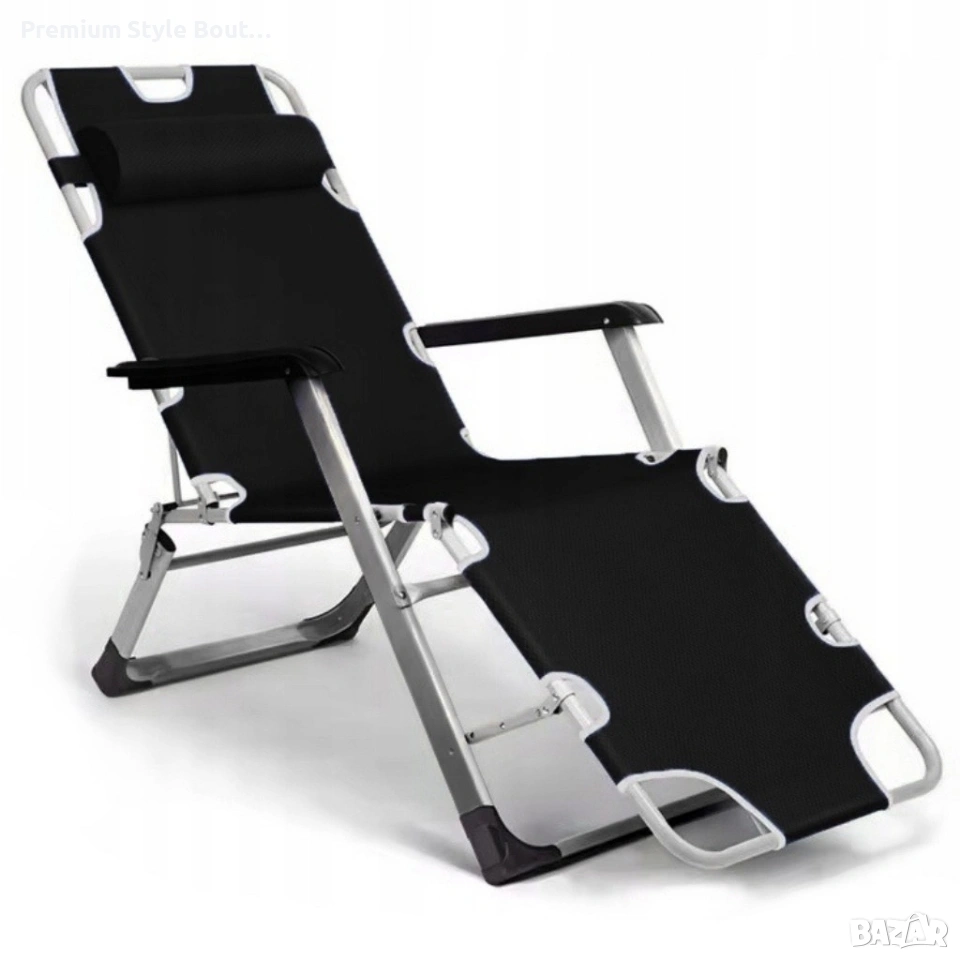 Размери (Ш/Д/В): 66 / 97–178 / 95 см — просторна повърхност за лежане и лесно адаптиране към предпочитаната позиция. Материал на рамката: метал с прахово покритие за защита от корозия. Текстил: дишаща материя Textoline с ватирана подложка за комфорт. Подложки: пластмасови, против хлъзгане за допълнителна стабилност. Функция: сгъваем, лесен за пренасяне и съхранение.