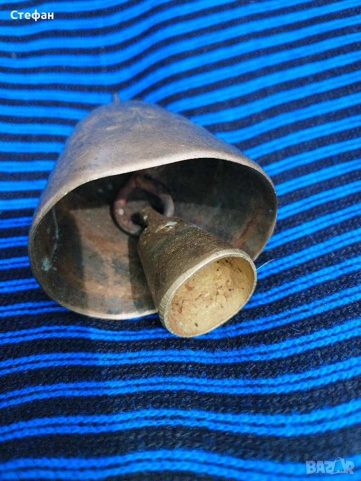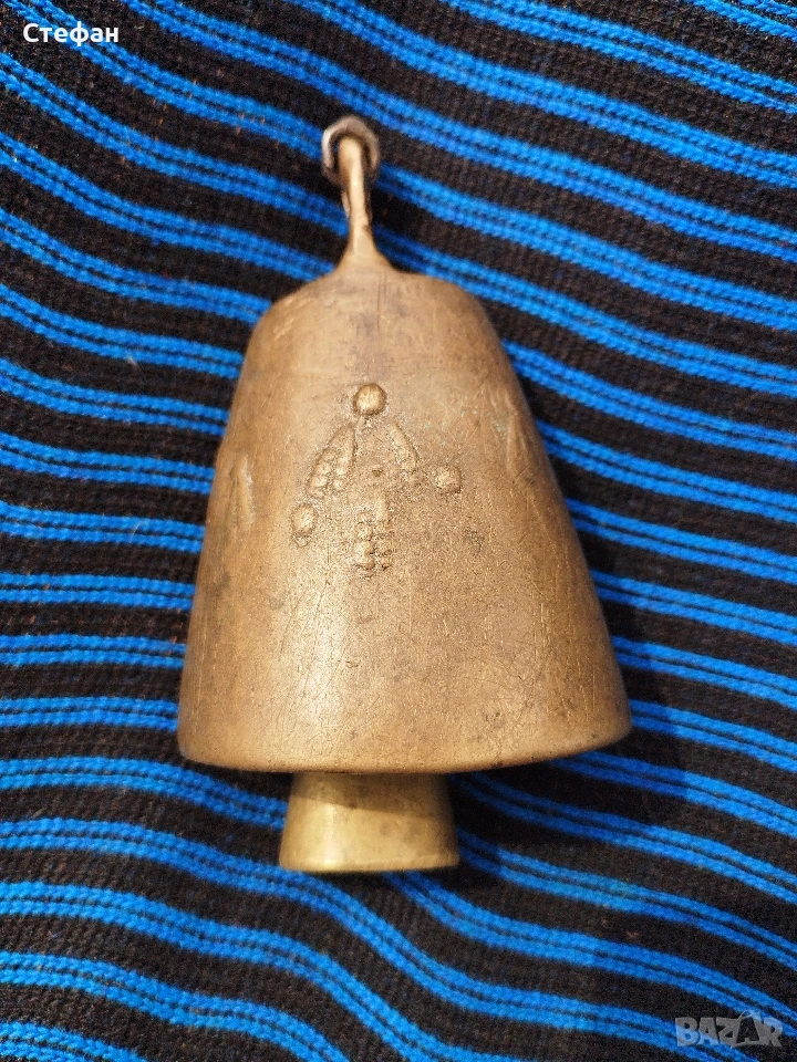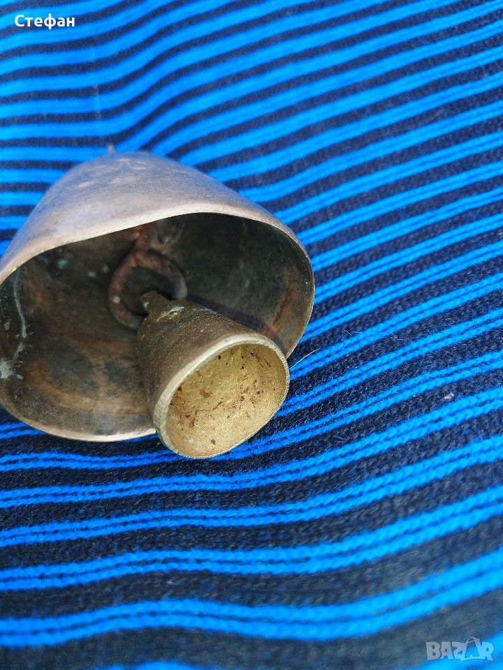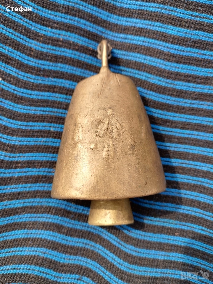 Звънеца е 7.3см.от ръб до ръб.Няма спукано или лепено.Има хубав звук