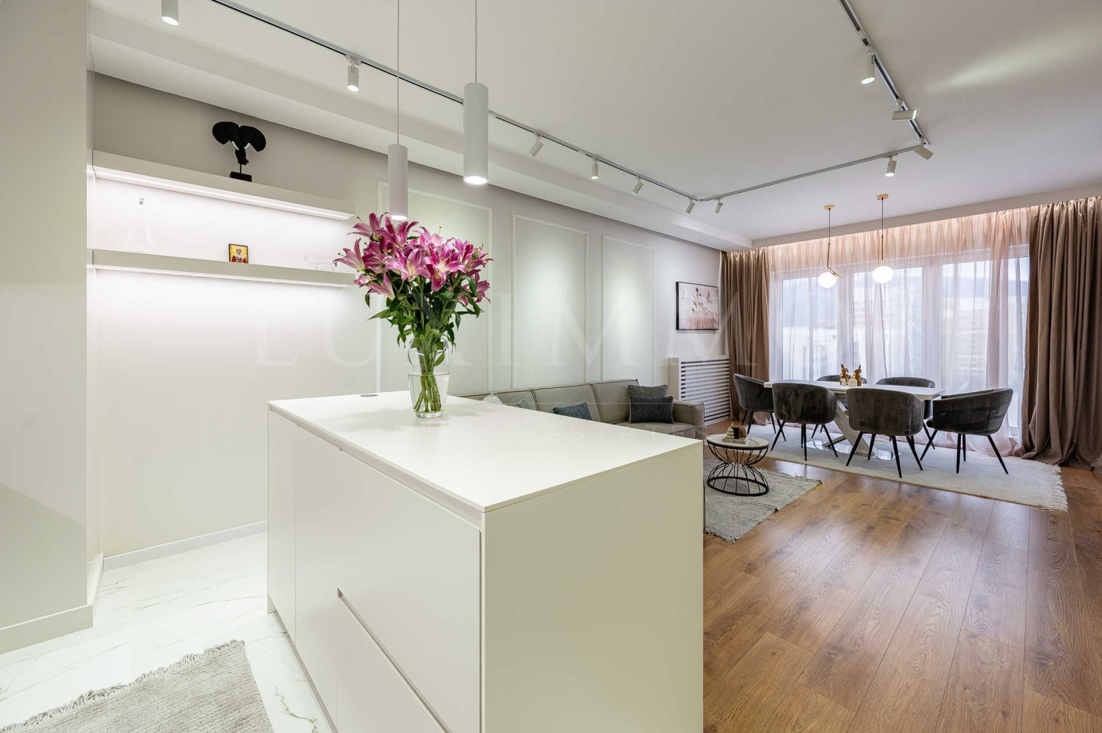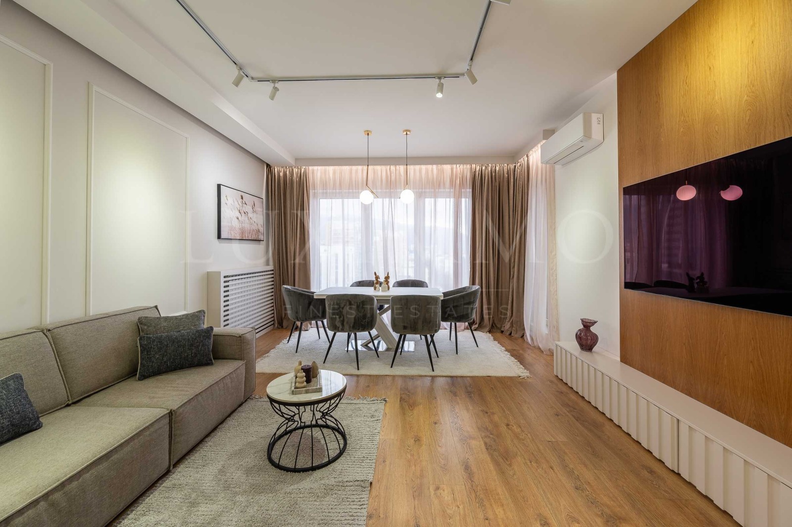 Жилището е напълно обзаведено с висок клас електроуреди Miele и мебели по индивидуален проект. Предлага модерни интериорни решения с внимание към всеки детайл, създаващи уютна атмосфера и усещане за висок стандарт на живот. Светлина, топлина и комфорт ще Ви посрещнат във всички помещения.