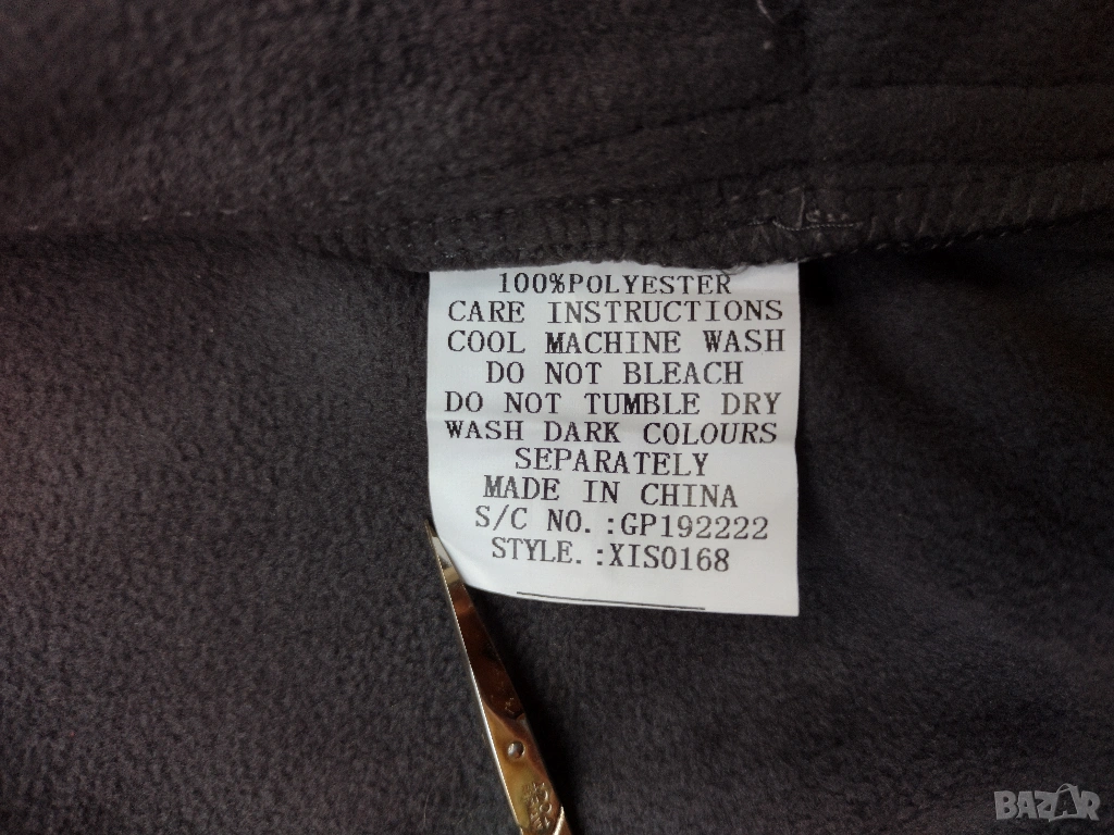 Якето се закопчава с цип. Отпред има два джоба