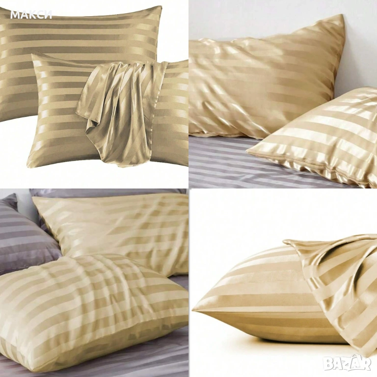 Луксозни разкошни сатенени калъфки за възглавници, ултра меки, гладки и комфортни в бежово райе - 2 → Обява 53923575
