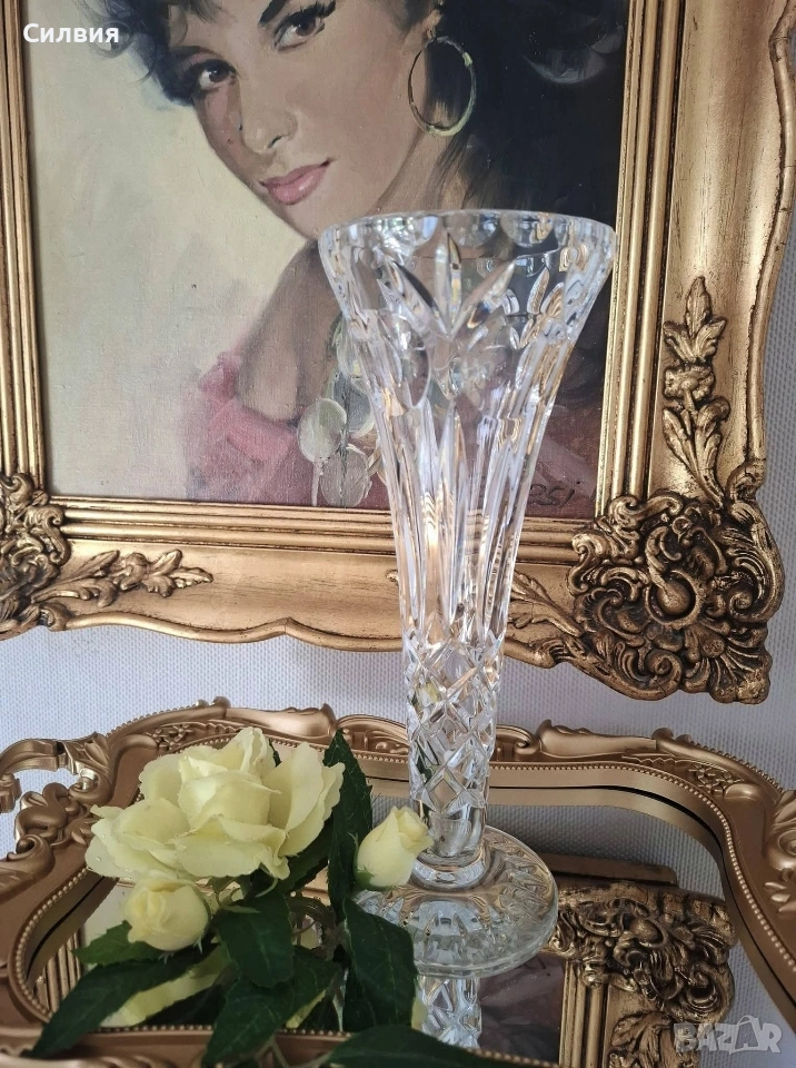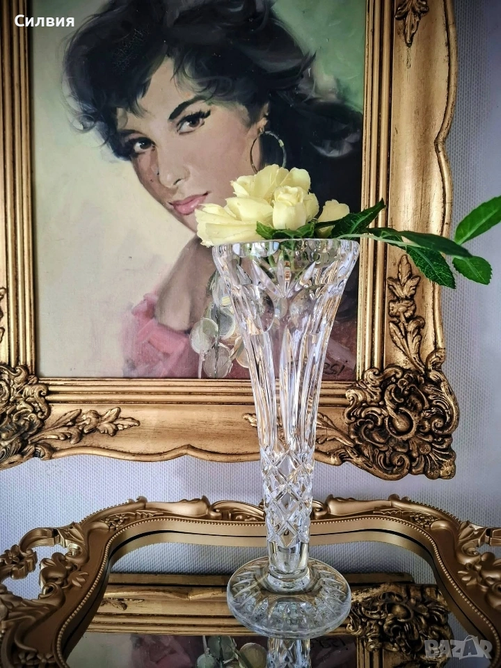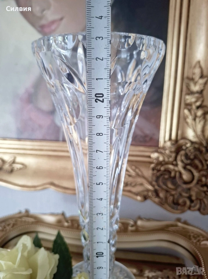 Истинско бижу за ценителите на винтидж естетиката – изящна ваза от висококачествен кристал, която носи духа на една по-изтънчена ера. Със своята впечатляваща височина от 23 см, тя е перфектният акцент за Вашата масичка или антикварен рафт.