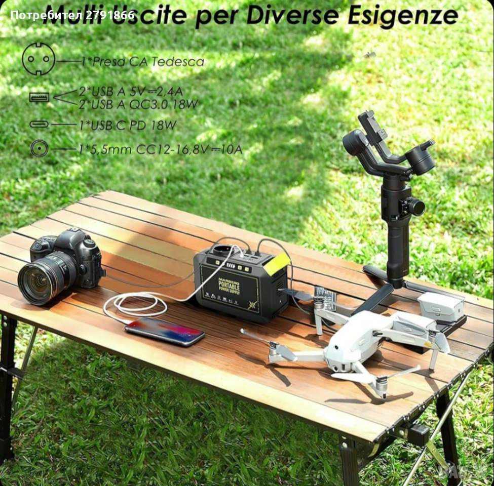 - МНОГО ИЗХОДИ: Има 7 изходни порта, които могат да се използват едновременно, а вградената BMS система осигурява стабилност и безопасност. Изходният кабел за DC зарядно за кола (включен) ще захранва автомобилни хладилници, прахосмукачки и въздушен компресор в случай на спешност. USB и USB C PD портовете са съвместими с всички мобилни телефони (1 час пълно зареждане), таблети (1,5 часа пълно зареждане), лаптопи (2 часа пълно зареждане) и са незаменимо устройство за пътувания. Един AC изходен порт ще захранвате домакински уреди, като малки телевизори, игрови конзоли, проектори, надуваеми легла, дронове и др.
