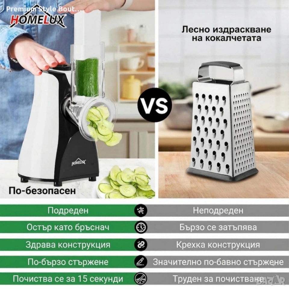 Електрическо ренде 5-в-1 HOMELUX – Мултифункционална резачка за зеленчуци, плодове и други