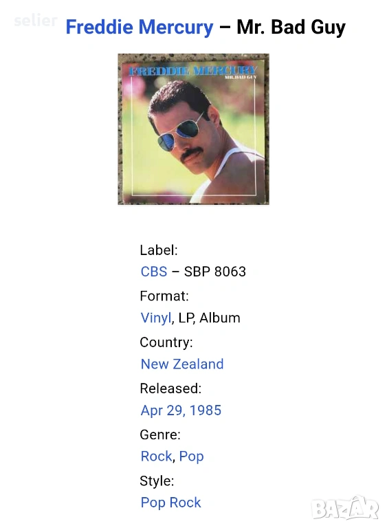Freddie Mercury – Mr. Bad Guy Издание : 🇳🇿 NEW ZEALAND 1985г Състояние на винила:едната страна е