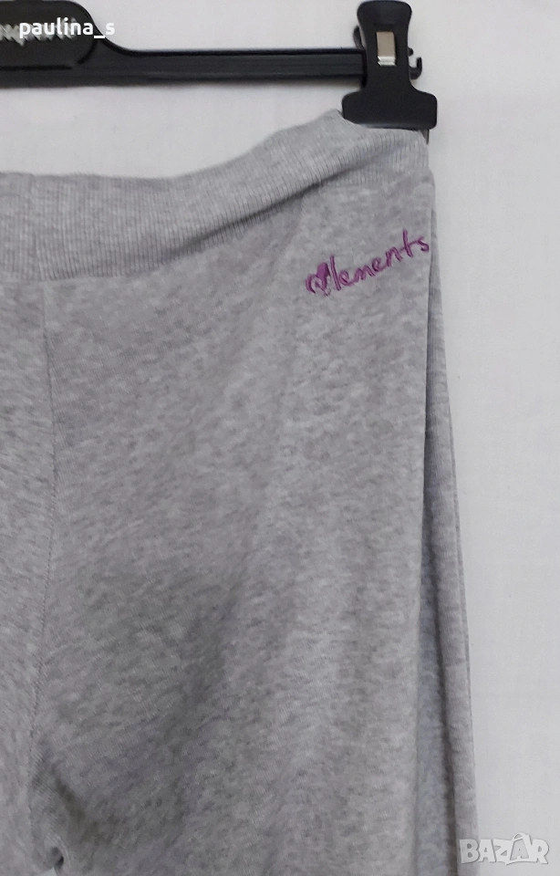 3️⃣. XS / M - "Elements" by Kenvelo. Цената е крайна, без пазарлъци 10 евро. Кадифено еластично долнище за спорт и туризъм, бродирано лого отзад, широк ластик с шнур на талията, прави крачоли, съдържа 25 % памук, много нежна на допир материя. Не е чисто ново, но е без дефекти, съобразена цена, една бройка е, става за посочените размери, вижте мерките в обявата, моля.