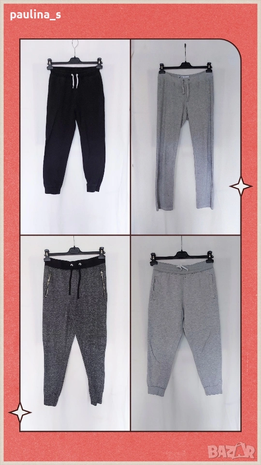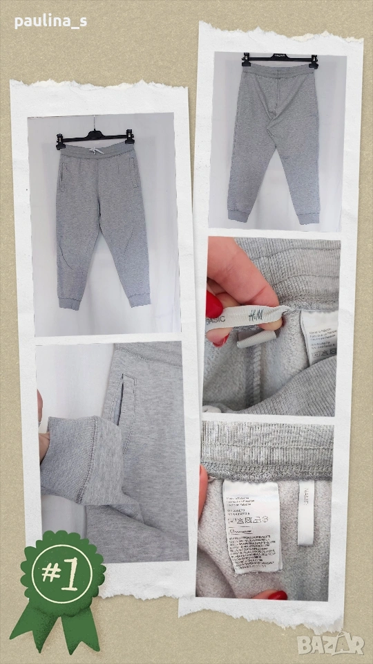 1️⃣. Колаж / XS / S - "H&M" basic. Цената е крайна, без пазарлъци 5 евро. Дамско светло сиво ватирано долнище, има еластичност, два джоба, широк ластичен колан с шнур. Не е чисто ново, но е без дефекти, съобразена цена.
