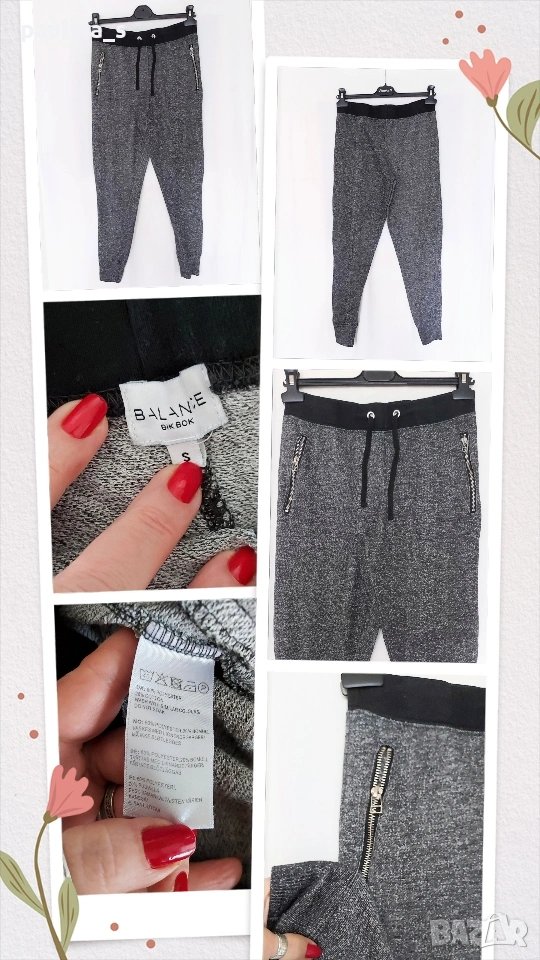 2️⃣. Колаж / XS / M - "Balance" by Bik Bok. Цената е крайна, без пазарлъци 9 евро. Еластично двуцветно долнище за спорт и туризъм или за у дома, два ефективни джоба с ципове, маншети долу и широк ластик с шнур на талията. Като нови, без дефекти и етикет, една бройка, става за посочените размери, вижте мерките в обявата, моля.