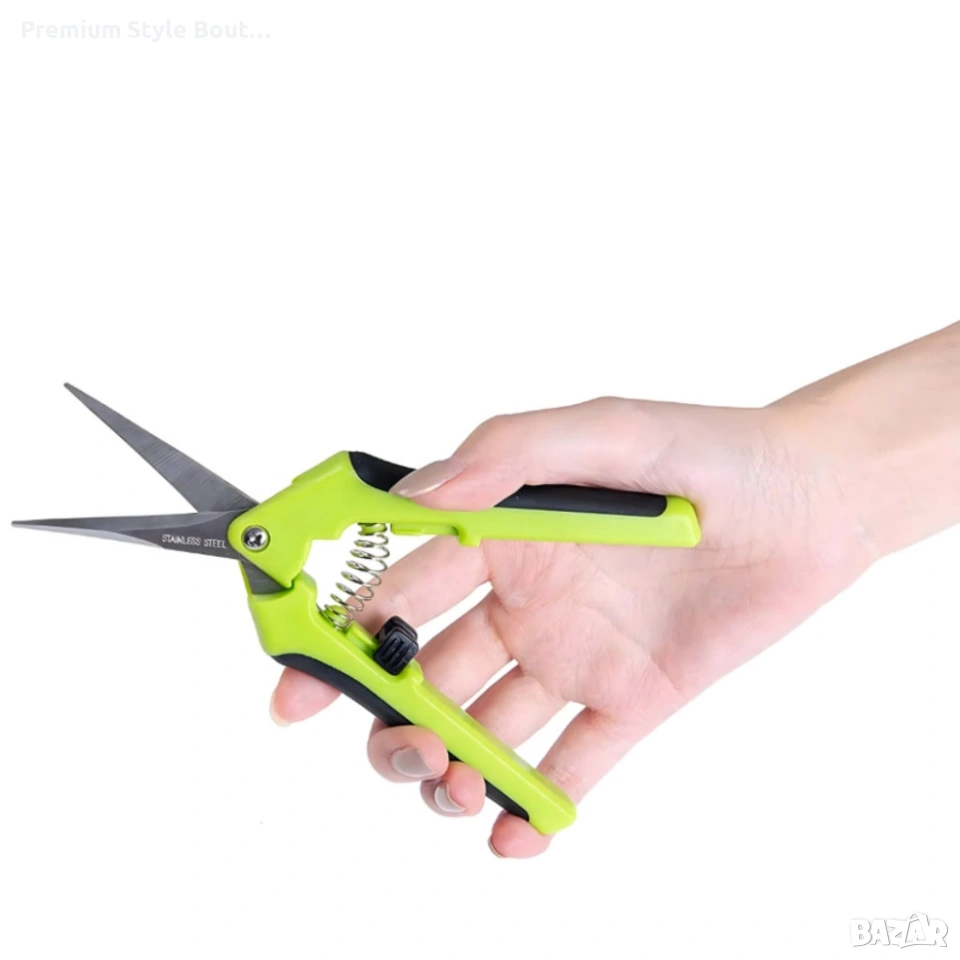 Технически характеристики на Градинска ножица с пружинен механизъм и ергономични дръжки - лека и удобна Материал: закалена стомана (острие), пластмасови и гумени елементи (дръжки) Височина/дължина: около 16.5–16.7 см Максимално разстояние между остриетата: до 3.7 см Дължина на острието: приблизително 5.8 см Тегло: около 120 г — изключително леки за продължителна работа Цвят: черен и зелен Приложение: подрязване на храсти, рози, билки, цветя; премахване на сухи клони; оформяне на декоративни растения