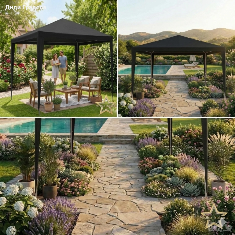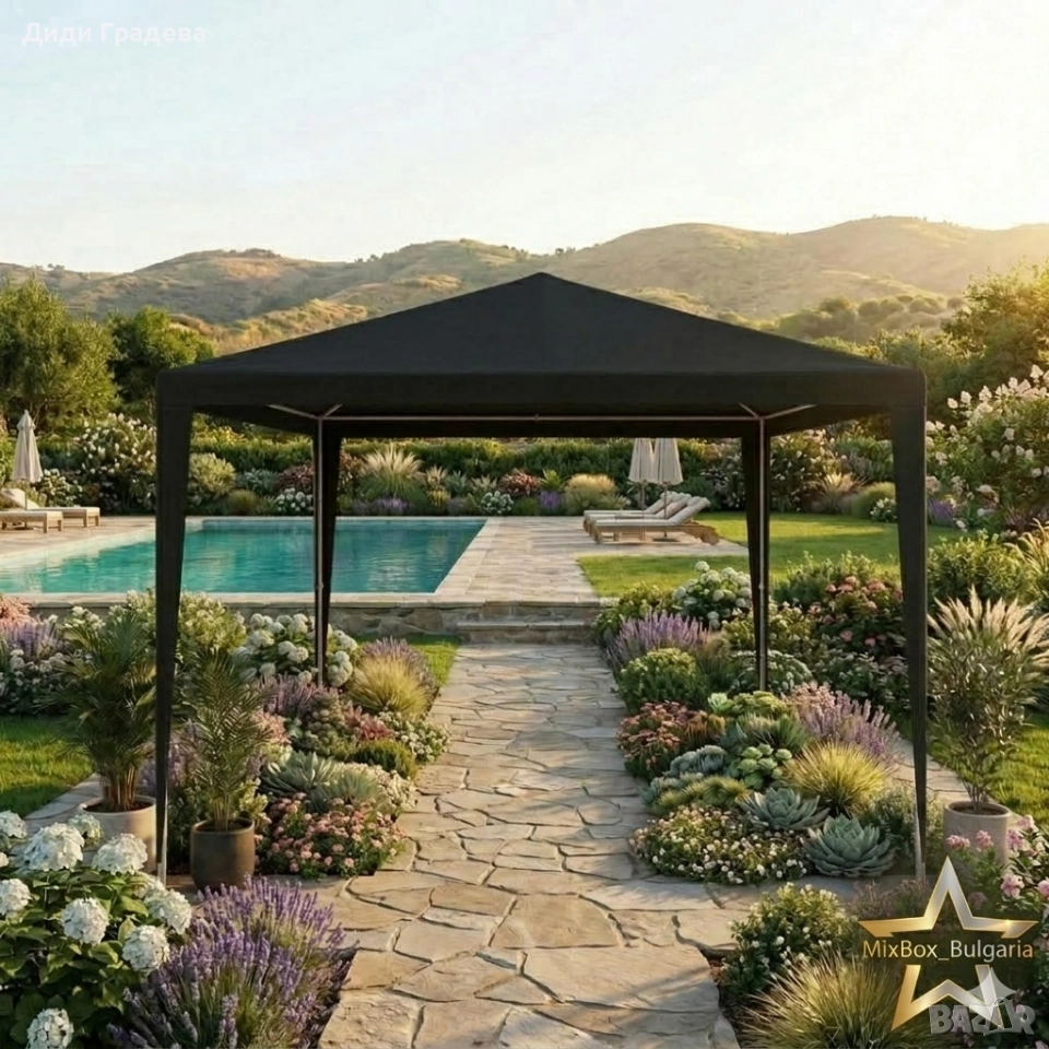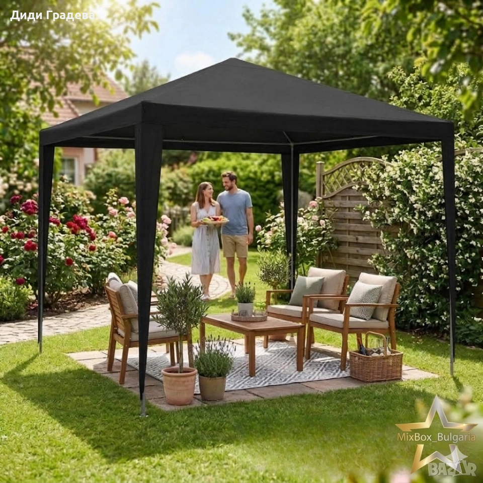 Градинска шатра тип „павилион“, 3x3м, Водоустойчива, Прахово боядисана стоманена рамка, Сива