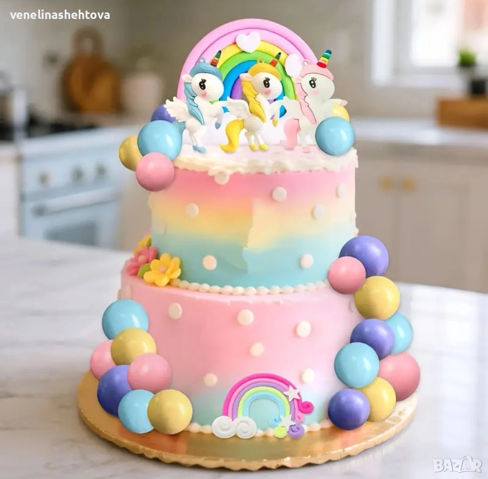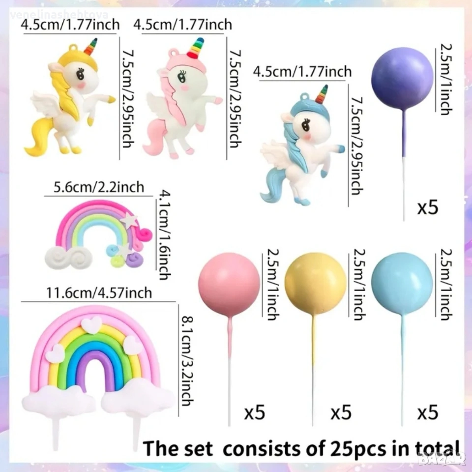 25 броя комплект Unicorn еднорог дъга топчета за декорация на торта → Обява 53924153
