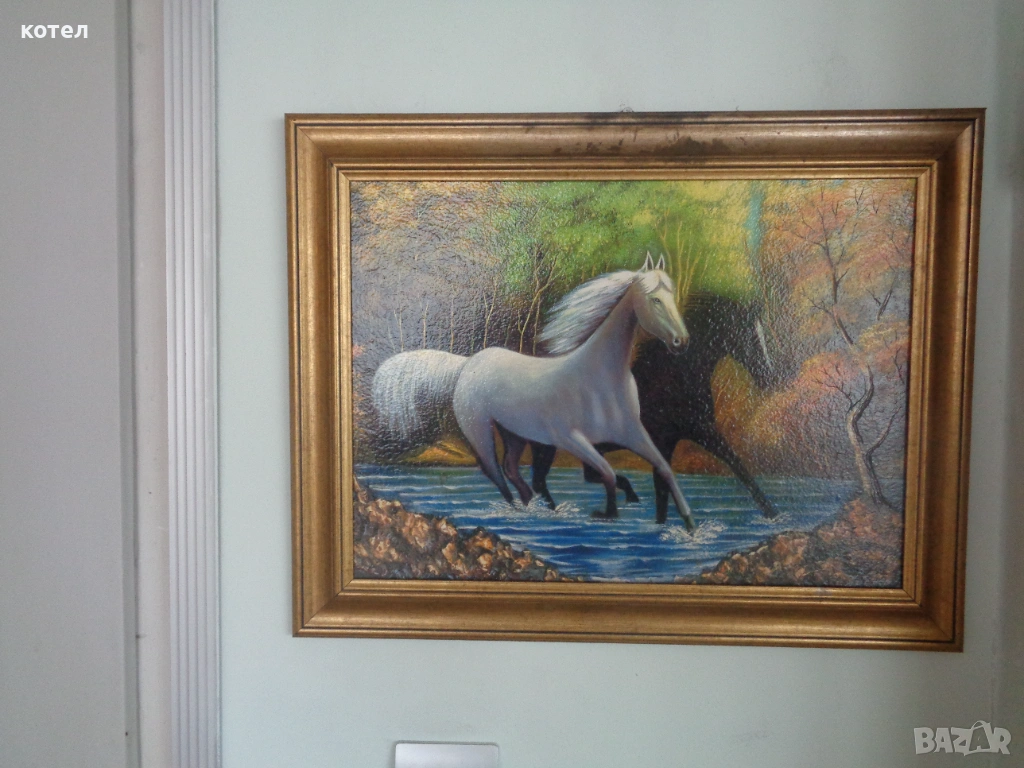 Продавам авторска картина с маслени бои ,,Препускащи коне" → Обява 53924575
