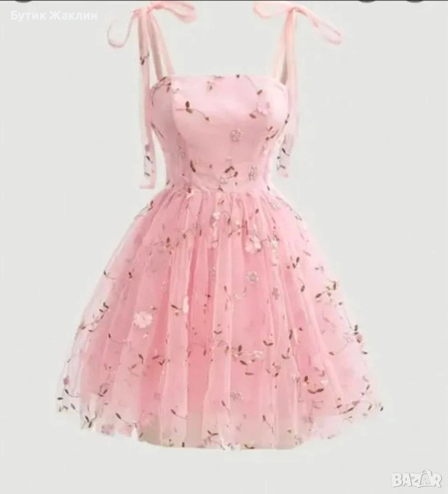 Розова тюлена рокля с бродерия , снимка 1 - Рокли - 53924631 Розова тюлена рокля с бродерия , снимка 2 - Рокли - 53924631 1/2