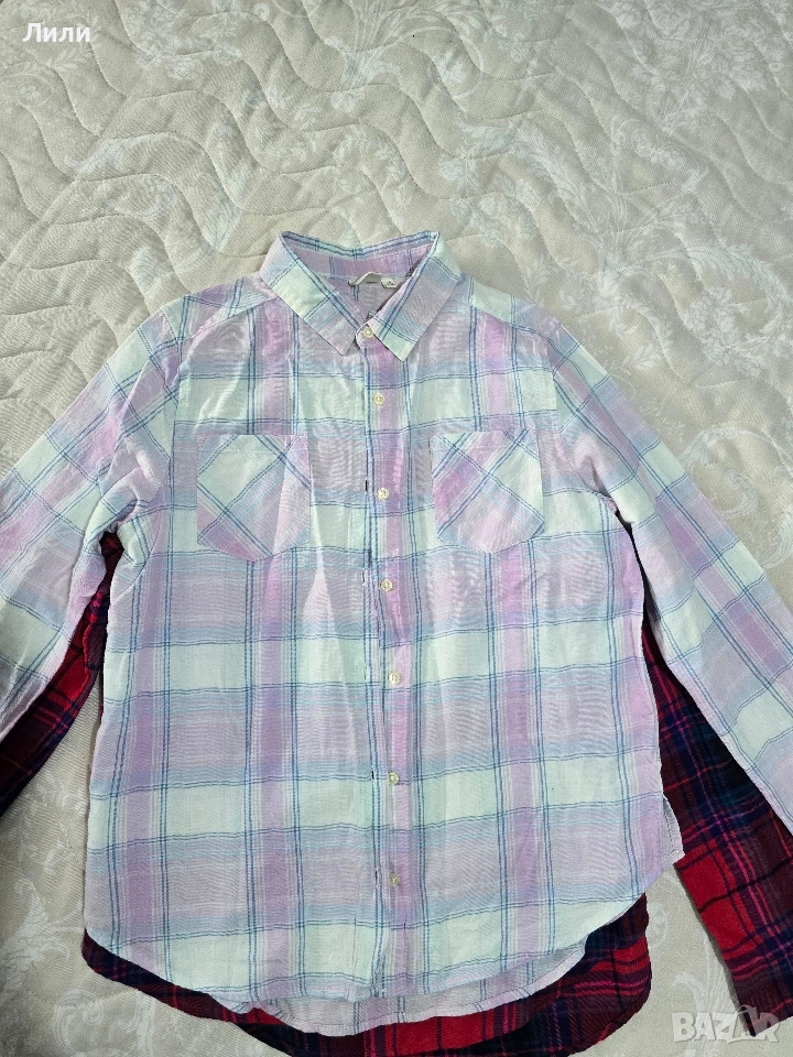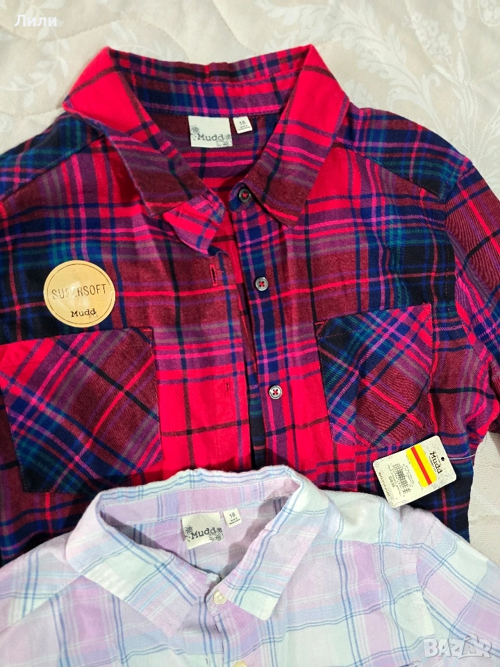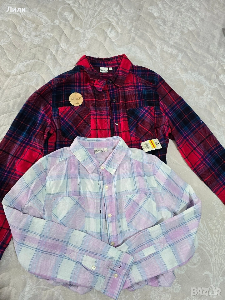 Страхотни памучни меки ризи ,серията е детска,за 16 години,но става и за XS,S . размер .Едната риза е нова ,а другата е носена веднъж,без следи от употреба.Купувани са от САЩ.