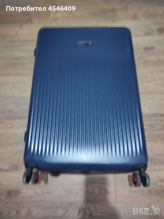 Голям пътнически куфар в син цвят. Идеален за дълги пътувания и притежава достатъчно място за всички необходими неща. Много добро състояние и чистота. Приблизително 73см височина, 52см широчина и 30см дълбочина.