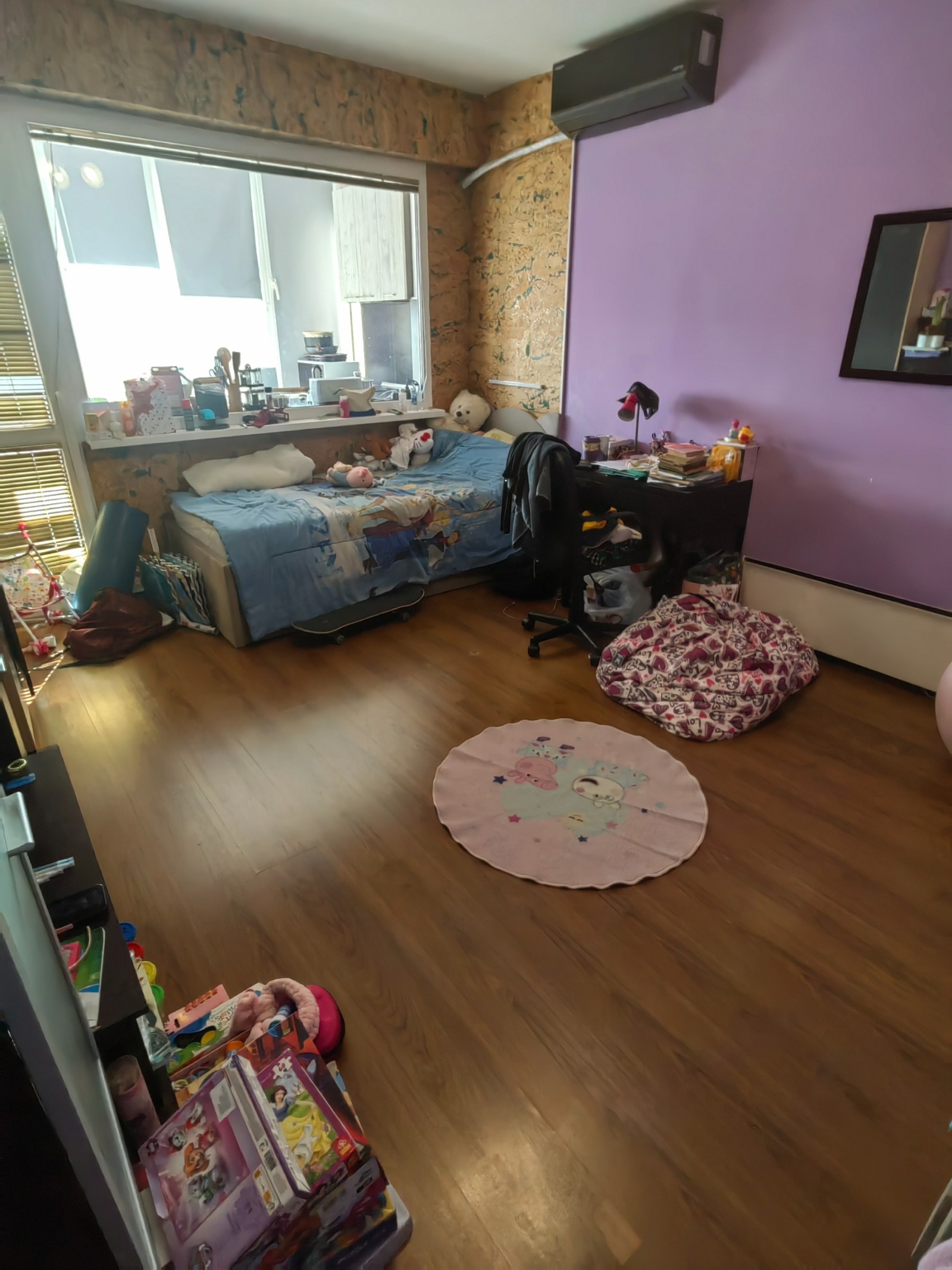 Двустаен непреходен апартамент с изцяло южно изложение до БИЛА на 5-ти етаж от 7-етажен блок състоящ се от входно антре, две еднакво големи стаи с размерите на хол, отделна кухна,баня с тоал. и две големи тераси тип лоджии като едната е преустроена на кух. бокс а кухнята е трапезарна част. Апартамента е изключително топъл тъй като е среден, саниран със сменена дограма с ПВЦ, нова баня-изцяло ремонтирана, нова кухня ,продава се с обзавеждането, реновиран вход със сменена дограма,асансьор Тел. за връзка:0899995942.