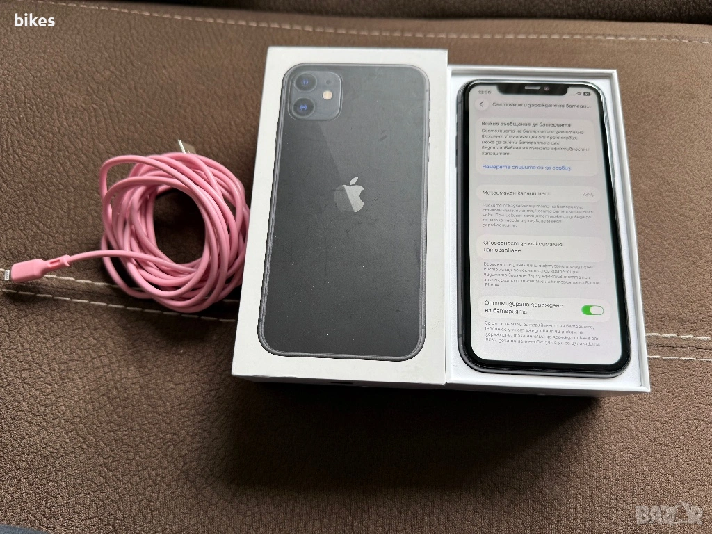 Battery health e 73%(издържа спокойно един ден)!