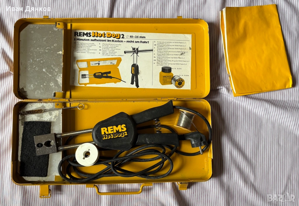 Продавам електрическа клеща-поялник REMS Hot Dog 2 за запояване на медни тръби с диаметър от 10 до 25 мм. Закупена е преди години в Германия и е използвана само лично и е в отлично състояние.