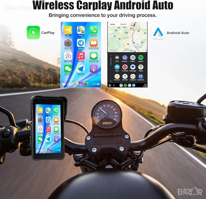 【Безжично CarPlay и Android Auto】Преносимата GPS навигация на мотоциклета поддържа връзка, докато държите ръцете си на кормилото. Интегрирайте смартфона си безжично и достъпвайте навигацията, музиката, обажданията и съобщенията си с интуитивни гласови команди чрез Siri или Google Assistant.