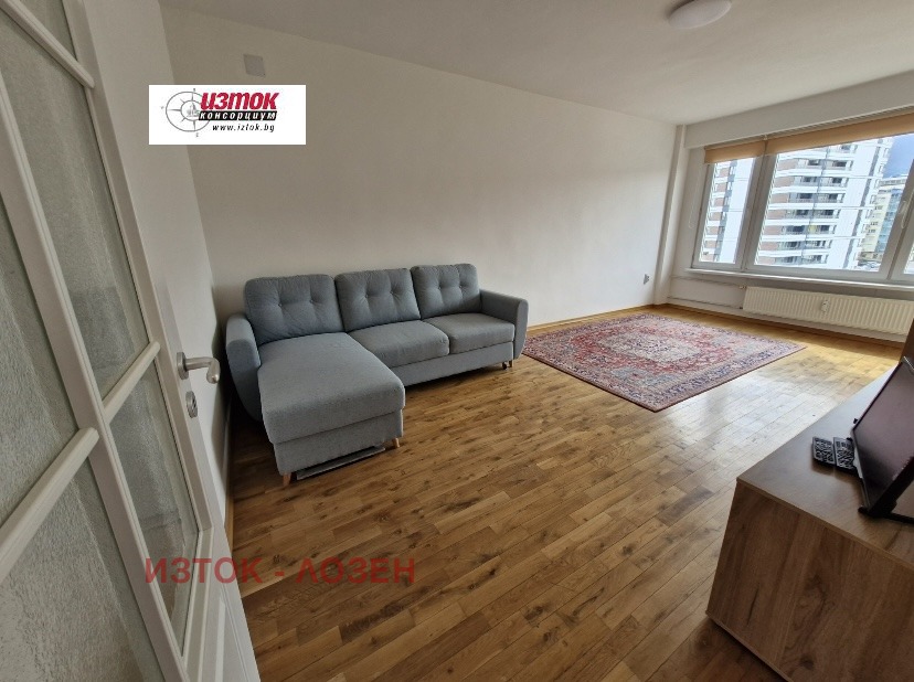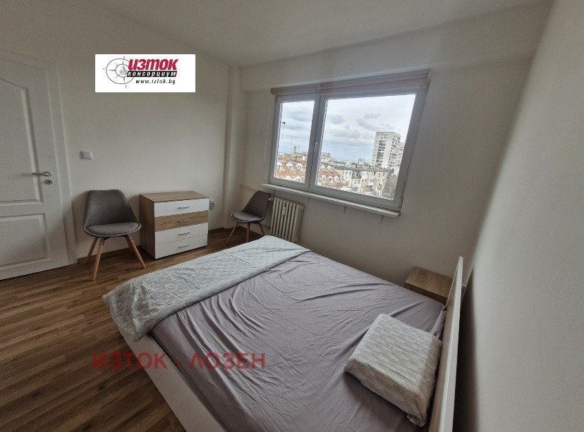 Реална обява! Първи наемател след ремонт! Свободен за наемане. ТОП място: до площад МОЛ България и пазар Борово, училище/детска градина и хипермаркети. НОВИ мебели, НОВИ електроуреди. ТРИ ОТДЕЛНИ ПОМЕЩЕНИЯ: дневна, спалня, отделна голяма кухня, баня с тоалетна, антре, коридор, балкон. Имотът е на 7-ми етаж от 8 в сграда от 80-те години с отлично поддържани общи части и работещ асансьор. Изложението е югозападно за дневната с прекрасна гледка към Витоша и североизточно за кухнята и спалнята към тихо междублоково пространство. Имотът е много добре ослънчен, с ниски разходи за отопление. Полуфренските прозорци в дневната и по-високите тавани създават допълнителен уют. Дневна: ъглов разтегателен диван, TV шкаф и гардероб. В спалнята - голям гардероб, спалня с матрак, нощни шкафчета, комод. Кухня: кухненски шкафове, мивка с батерия, вградени пералня, фурна, керамични котлони, аспиратор и хладилник с фризер, кухненска маса и столове. Баня с тоалетна: вградена структура, мивка с батерия, шкафове под и над мивка, бойлер за профилактика, душ батерия, аксесоари. Антре: портманто и гардероб. Коридор: вграден гардероб. ТЕЦ за отопление и вода. В района има детски градини, училища, МОЛ, пазар, банкови офиси, ресторанти, магазини, включително от големи вериги. Всички удобства за комфортно пребиваване са налични. ДНЕВНАТА при необходимост може да се ползва и като детска/втора спалня. Голямо, сухо, чисто МАЗЕ. Свободно паркиране пред блока. На 2 мин. спирки на трамваи 7,27; на тролейбуси: 2,9; автобуси: 61,64,73,204,304,Х10, нощна линия 4; на 2 спирки до метростанция: Бул България. С ключ. Добре са дошли кандидат-наематели със или без брокер. За допълнителна информация и огледи: Стефанка Спасова 0887619275