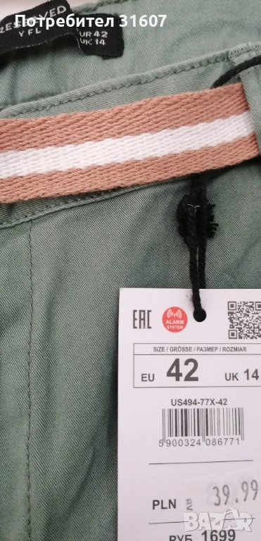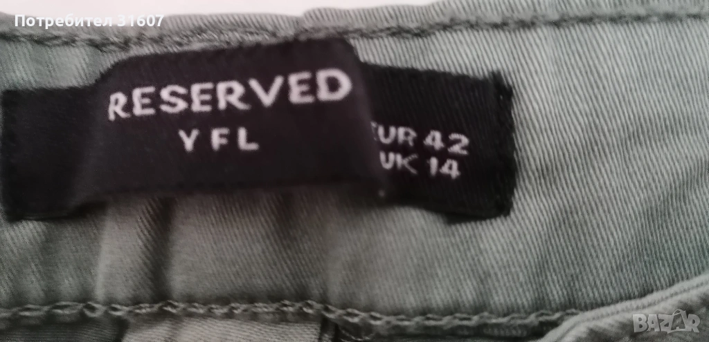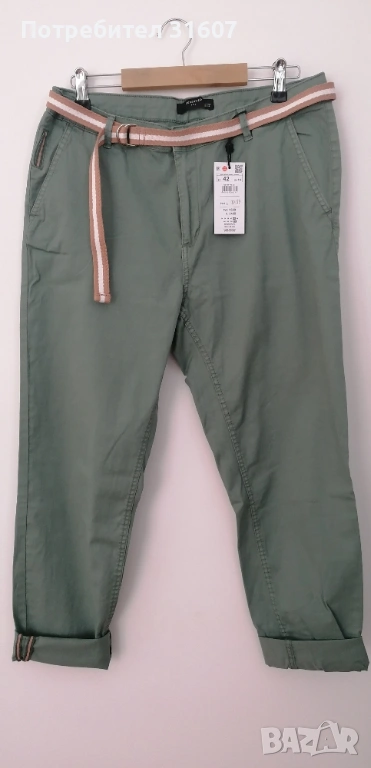 Чисто нов дамски панталон в модерен цвят "градински чай" на марката Reserved (линия YFL). С оригиналните етикети. Предлага се в комплект с текстилен колан.