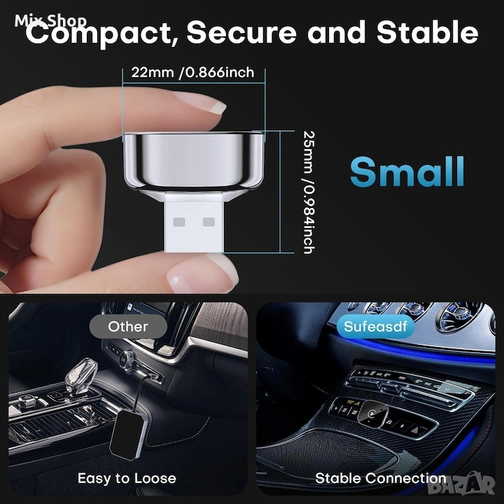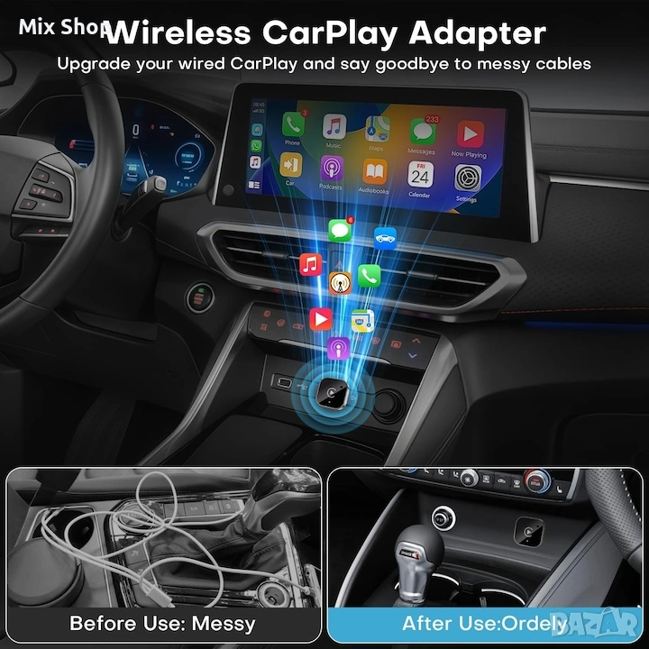 Този безжичен CarPlay адаптер е интелигентно устройство за свързване с автомобил, което ви позволява да надстроите колата си с безжична функционалност CarPlay и Android Auto. С лесното plug-and-play управление можете да се отървете от мръсните кабели и да се насладите на интелигентно и свързано шофиране.