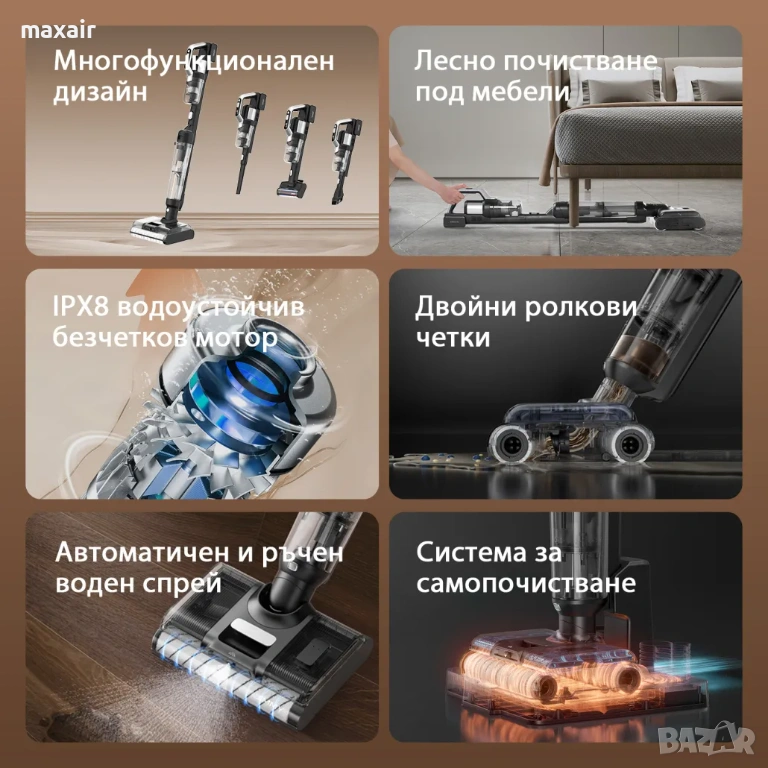 Без пропуски и мръсни места при почистване на всеки ъгъл от дома, благодарение на дизайна на въртящата се четка, достигащ до всяко място.