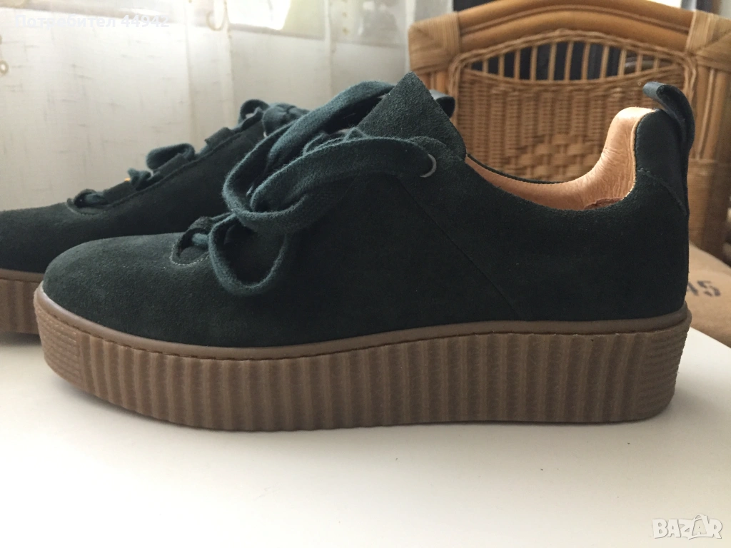 кожа - велур. Не са носени.Продават се в оригиналната кутия.