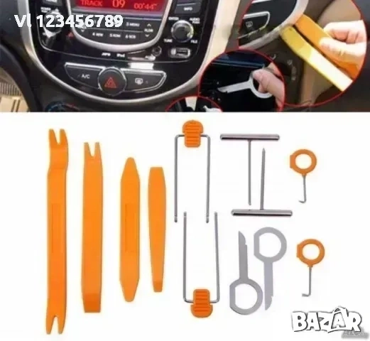 12 бр. практични инструменти за монтаж и демонтаж на автомобилно радио и интериорни детайли по автомобила.