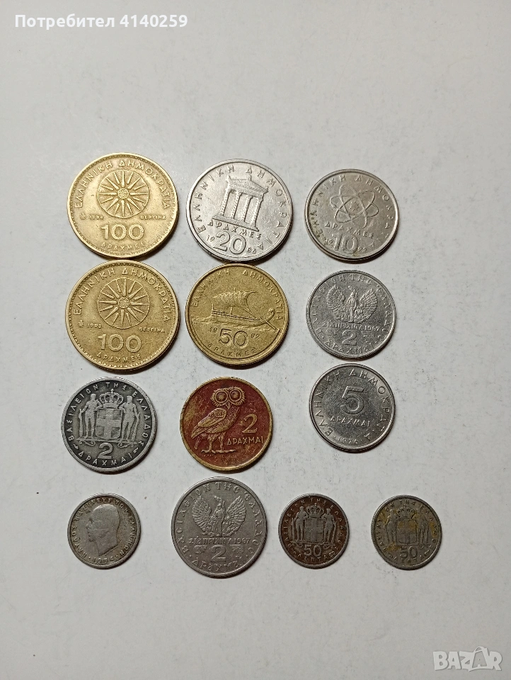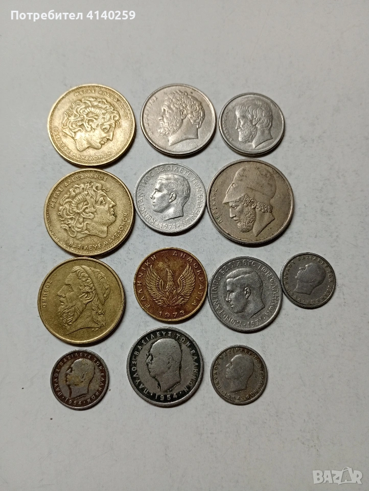 ГЪРЦИЯ МОНЕТИ ЛОТ РАЗЛИЧНИ НОМИНАЛИ ГОДИНИ НЕЧИСТЕНИ ЦЕНА ЗА 13 БРОЯ СЪСТОЯНИЕ ВИДИМО ПОЛУЧАВАТЕ СНИМАНИТЕ МОНЕТИ РАЗГЛЕДАЙТЕ ДРУГИТЕ МИ ОБЯВИ ДА КОМБИНИРАТЕ ДОСТАВКА ЕКОНТ ЗА ВАРНА ЛИЧНО
