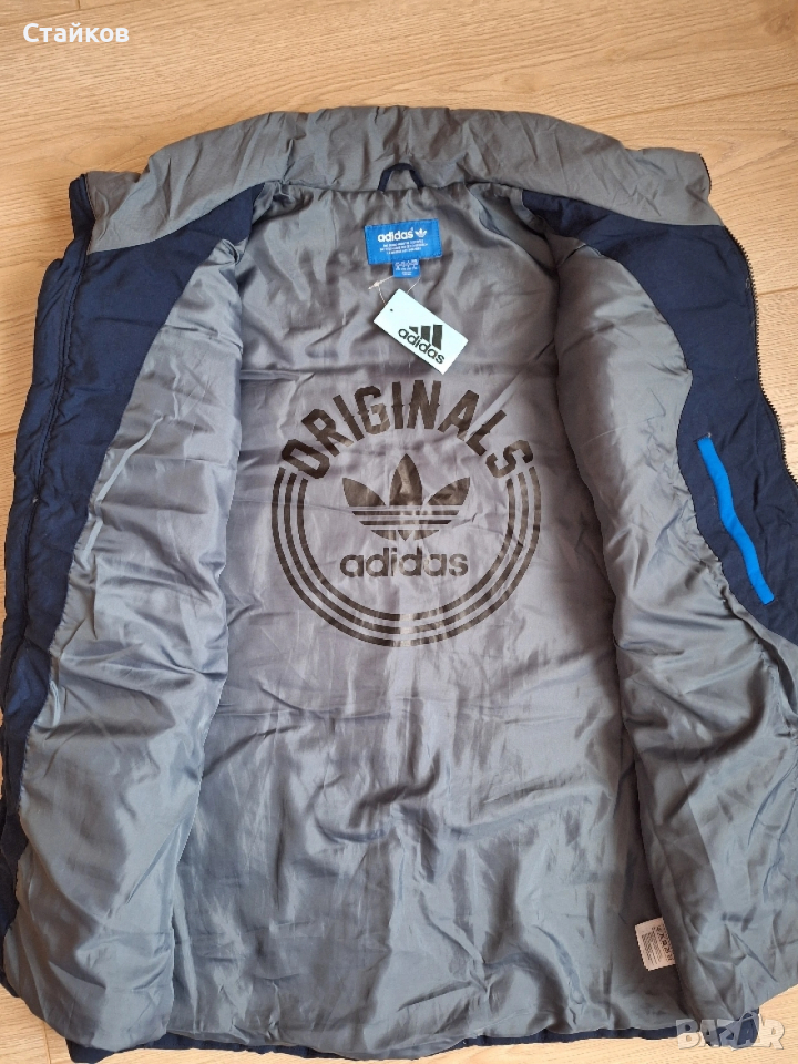 Елек Adidas оригинал,НОВ,размер ХХL,цвят сиво-син,с 2 външни и един вътрешен джоб с цип,от висококачествени материали и пълнеж.
